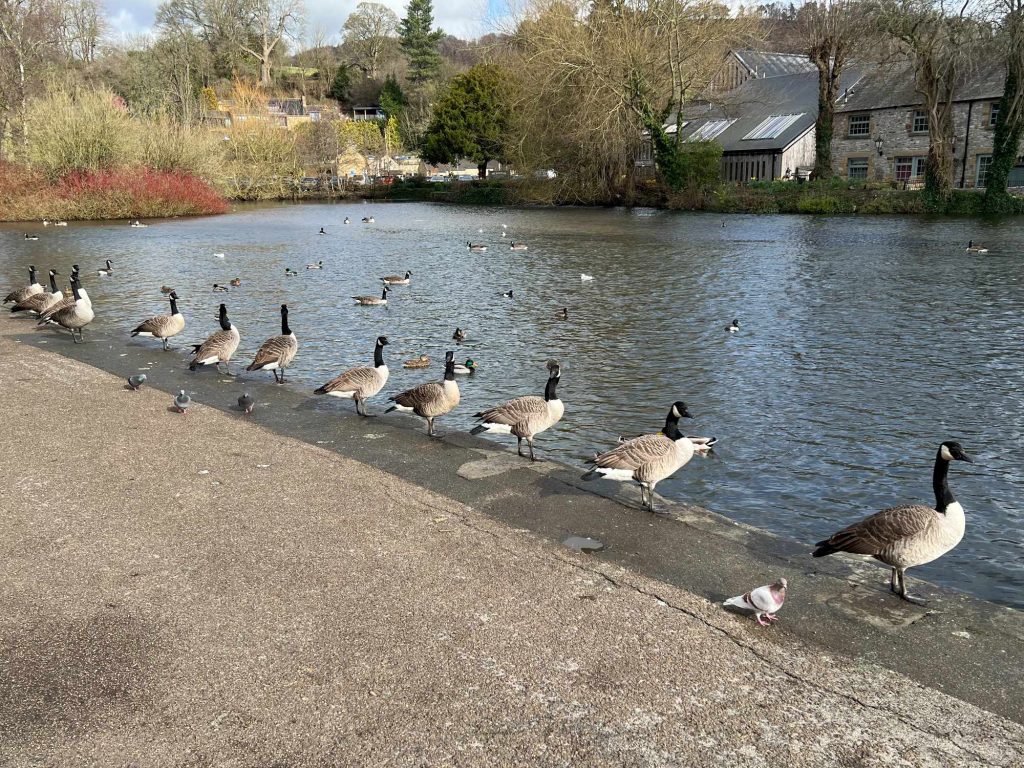 We started out by walking mainly uphill out of the village and across fields to join the Monsall Trail. Within a few minutes we passed by Thornbridge Hall and continued on to Hassop Station where we stopped for our coffee break. Feeling suitably refreshed we continued on the Monsall Trail, passing the old Bakewell station to the very end of the trail. At this point we took the steps to join Coombs Road heading for Bakewell. We left Coombs Road to take a path through the showground to a lovely spot on the riverside where we had lunch. As usual we were greeted by all manner of wildfowl who were very interested in our sandwiches.