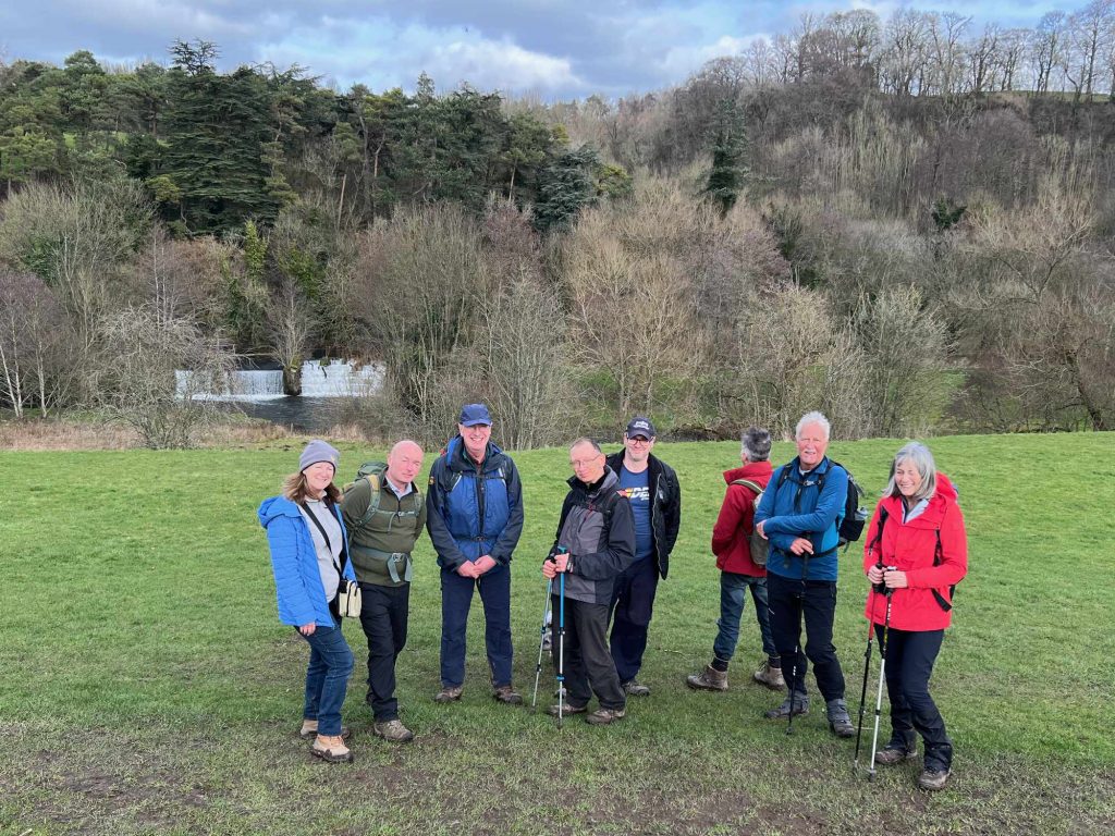 Thirteen walkers and one dog met at the bandstand in the village of Ashford in the Water ready for Vanessa and David’s walk.