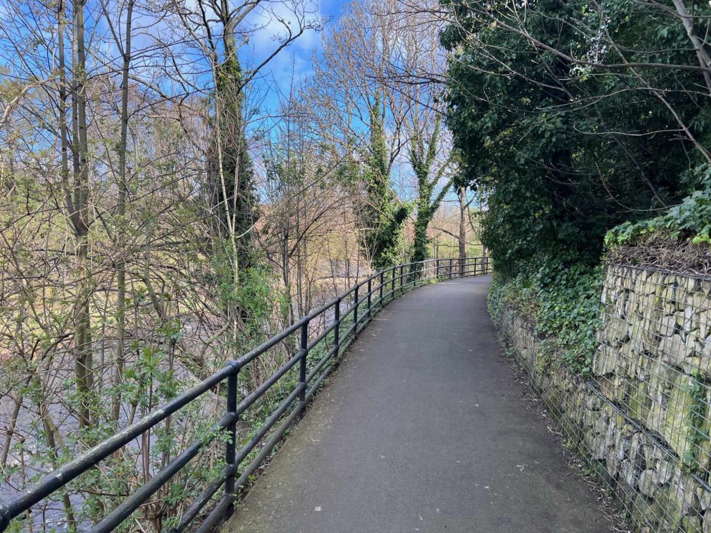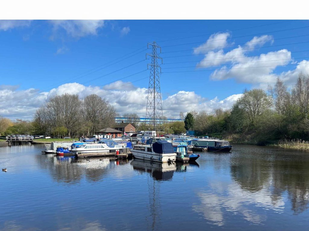 Phoebe briefed us about the walk and the change in route owing to a landslip that had closed part of the canal. This meant that our route started on the Five Weirs Walk and joined up with the canal after the point where it was blocked. The walk was a resounding success with a mixture of green corridors and areas of industrial interest. One of the many highlights along the way was the looping canal boat on the canal. You can read more about it here.