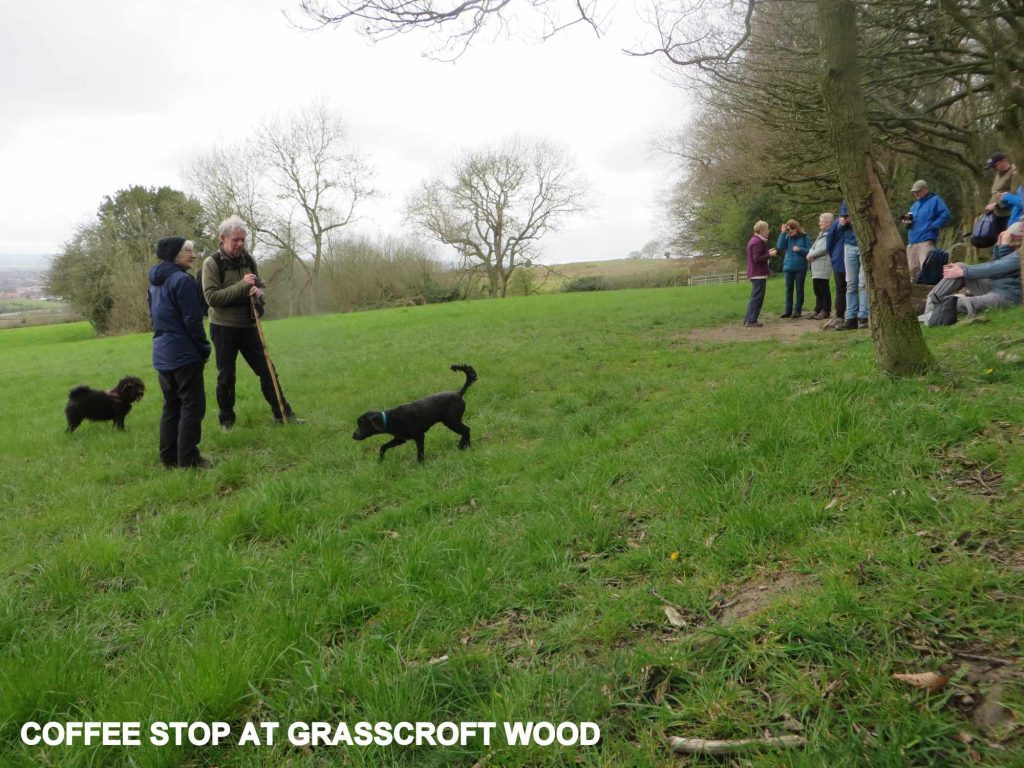 Fifteen walkers and three dogs met on Carlisle Close for Clive and Judy’s annual easter walk. The weather was set fair although it was a little chilly as we set off over the fields to St Bartholomew’s church in Old Whittington. Having walked along the narrow pathways next to the church we tackled our biggest climb of the day up to Grasscroft Wood. At the top of the hill, with excellent views over Chesterfield, I am pleased to say that Judy had brought along chocolate easter bunnies for everyone to have with their coffee.